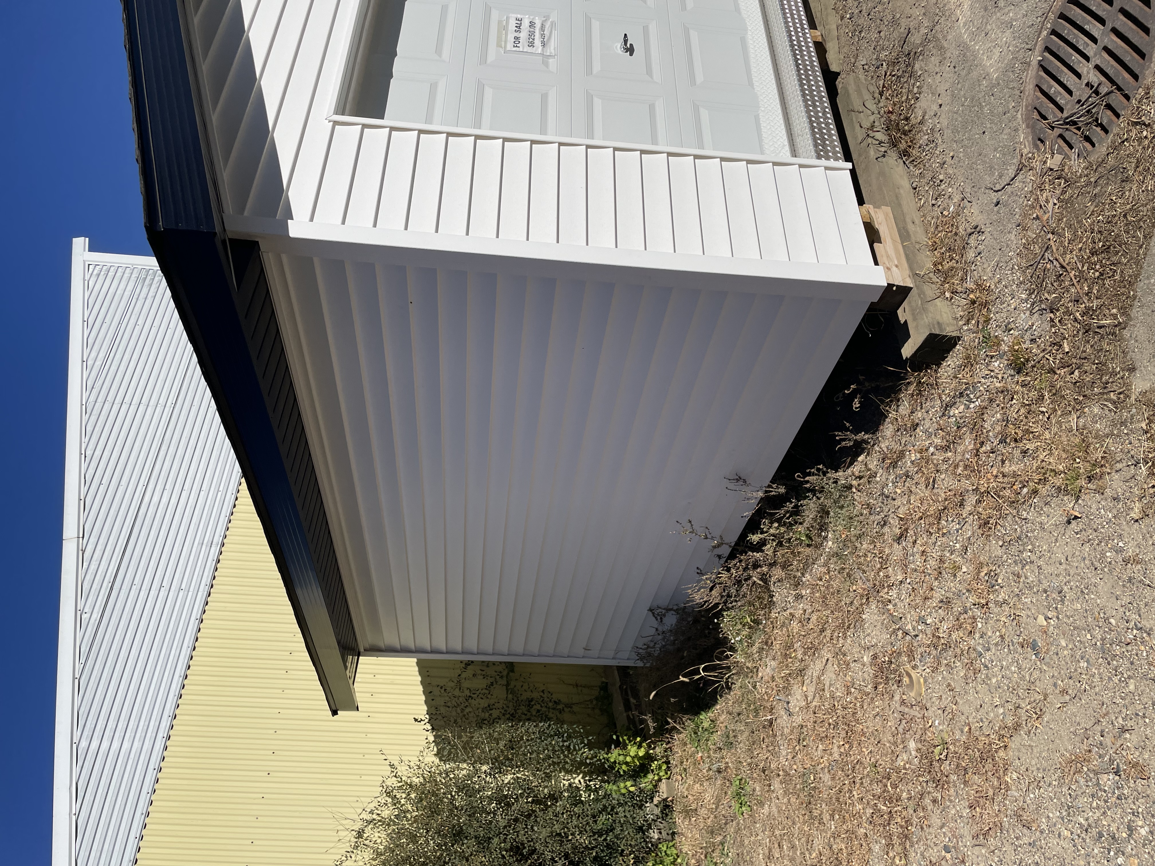 10 x 12 x 7 storage shed with one window, vinyl siding, shingled roof, and a 6 x 6 overhead door.  Arrangements can be made for delivery at an extra charge.