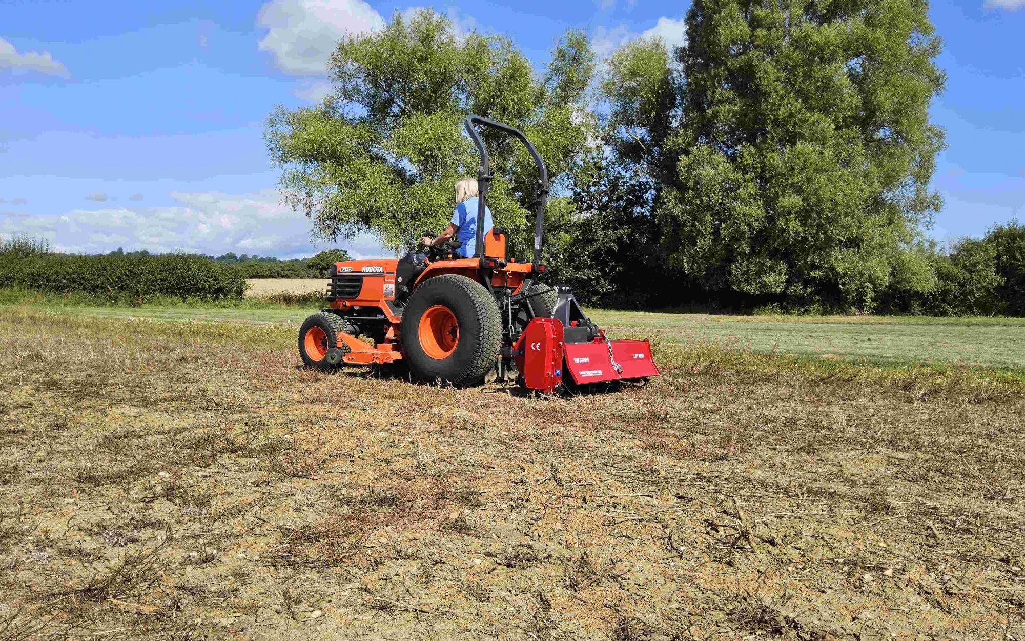 The left and right handed blades are mounted to the rotor cylinder and till the soil as the machine works. This allows the rotary tiller to effectively break up compacted soil to leave the ground ready for planting. Always check the land you are about to rotovate for any foreign objects or large stones. Remove these prior to starting. Lower the machine to the ground and start the PTO drive at 540RPM then lower in to the ground. Start at a slow speed to prevent the tractor or machine from struggling.