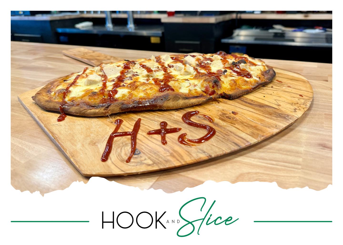 Ask us about reserving space for your next meeting or team outing! Hook and Slice will serve oven fired pizza, sandwiches and salads along with other smash-able appetizers along with cocktails and beer. We'll be offering numerous happy hour specials and promotions so stay tuned!