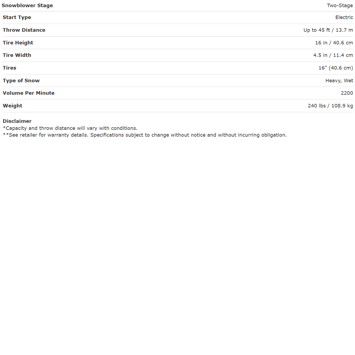 Steer yourself right (and left) with self propelled triggerless steering for fluid, tight turning—no triggers or levers required. Our exclusive Anti-Clogging System meters snow intake to reduce clogs and optimize clearing performance with no shear pins in sight. Instead, when our heavy-duty auger rolls into something hard, the engine purposely stalls to avoid damage. The sensational snow stats continue with Toro's commercial-grade gearbox, heavy-duty handle, steel chute, 16 in. tires, LED light, plus a 3-year limited warranty. Go undefeated against winter.