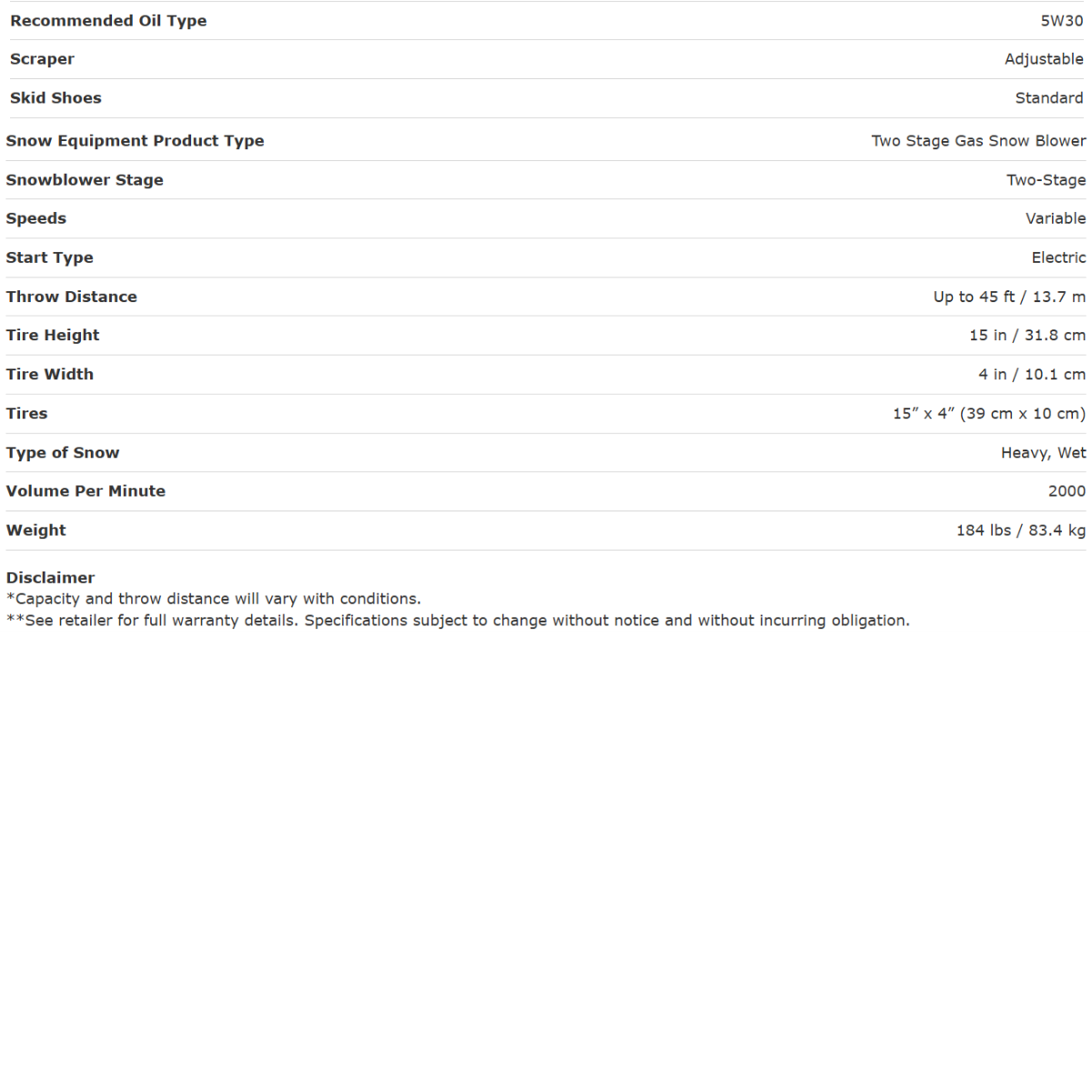 Built to Last - Dependable strength and durability now offered with heavy duty handles, steel chute and 15” tires.