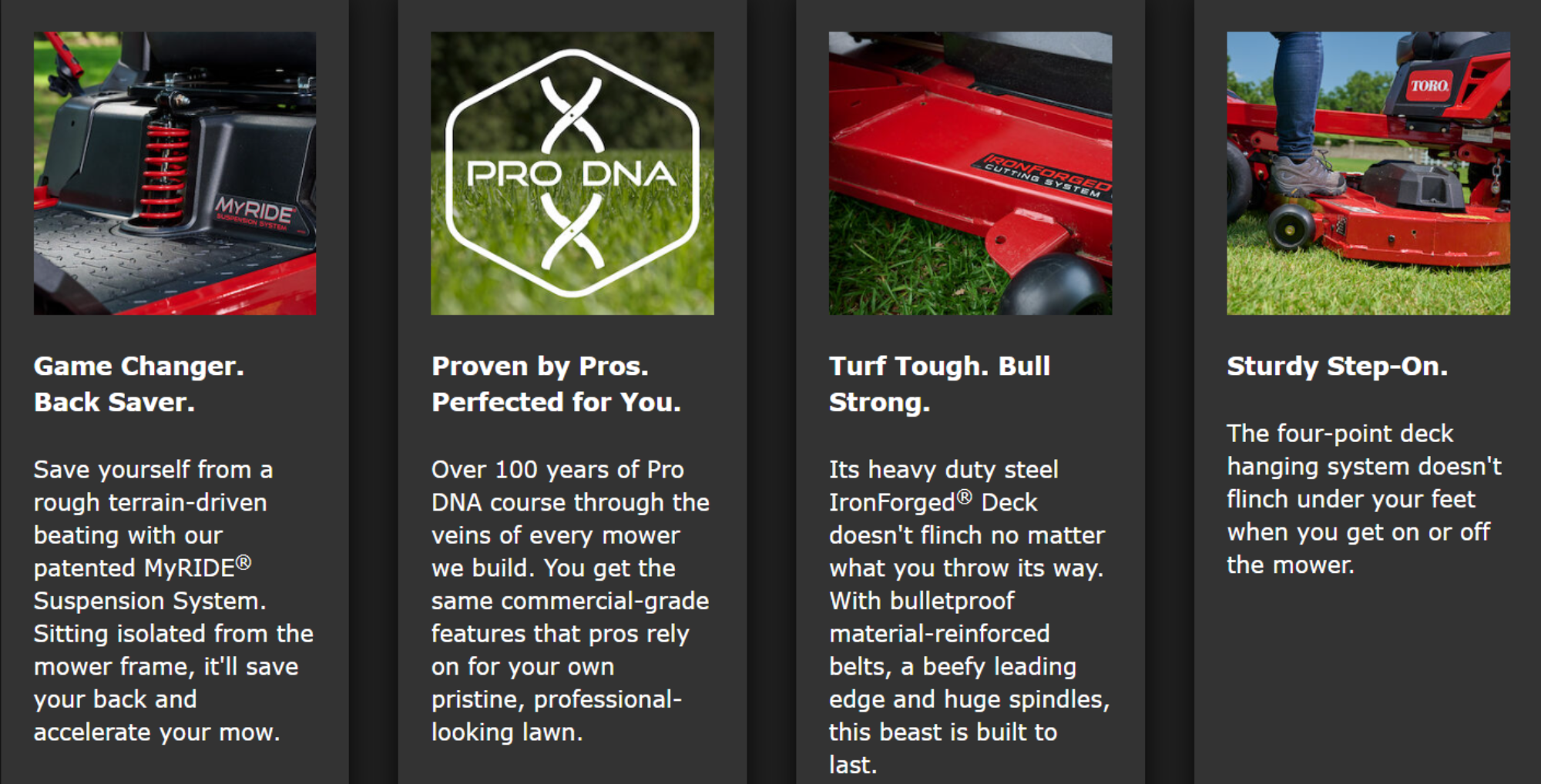 • Over 100 years of Pro DNA course through the veins of every mower we build.