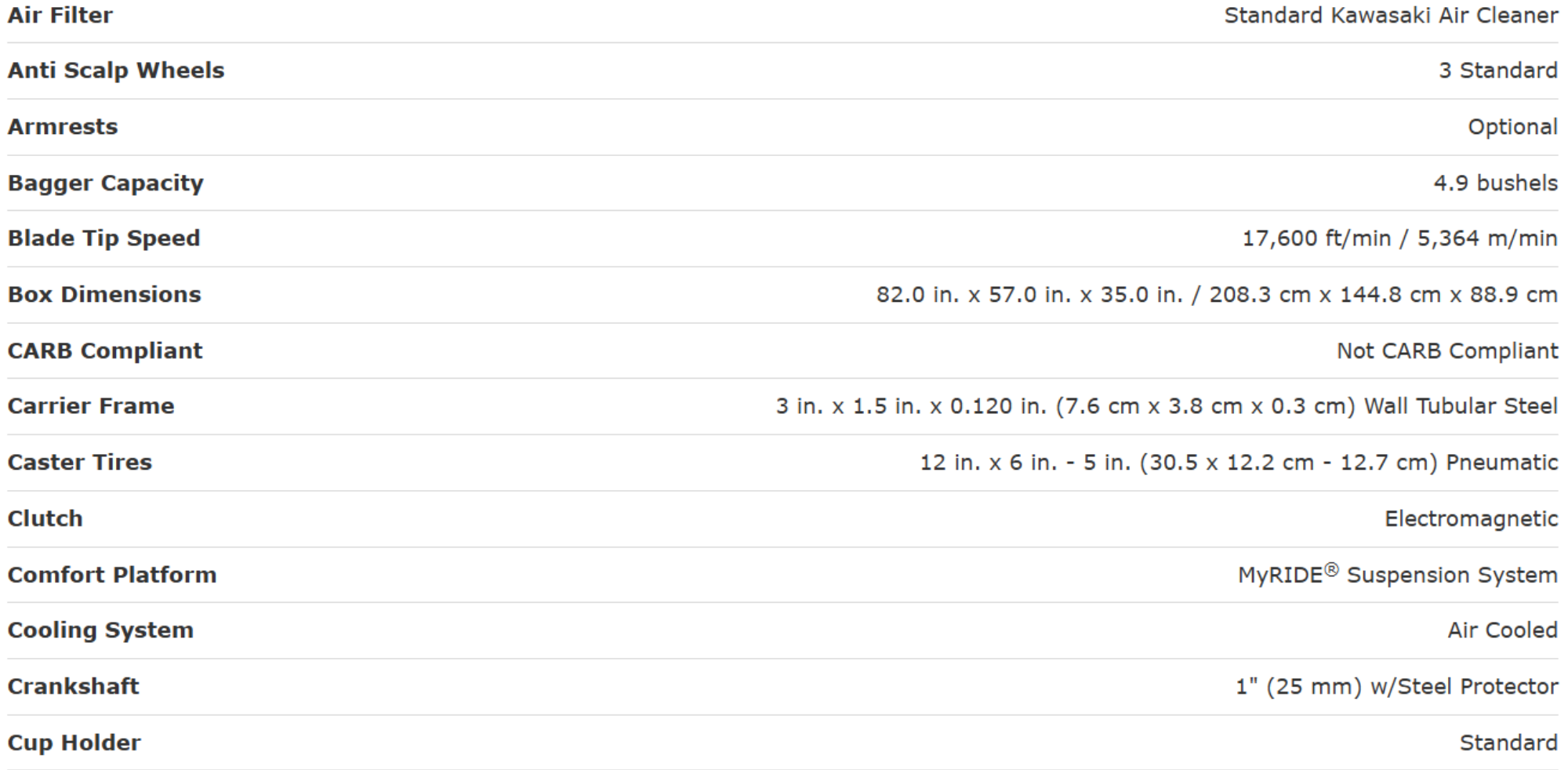 • Patented MyRIDE® Suspension sits isolated from the frame to save your back and accelerate your mow.