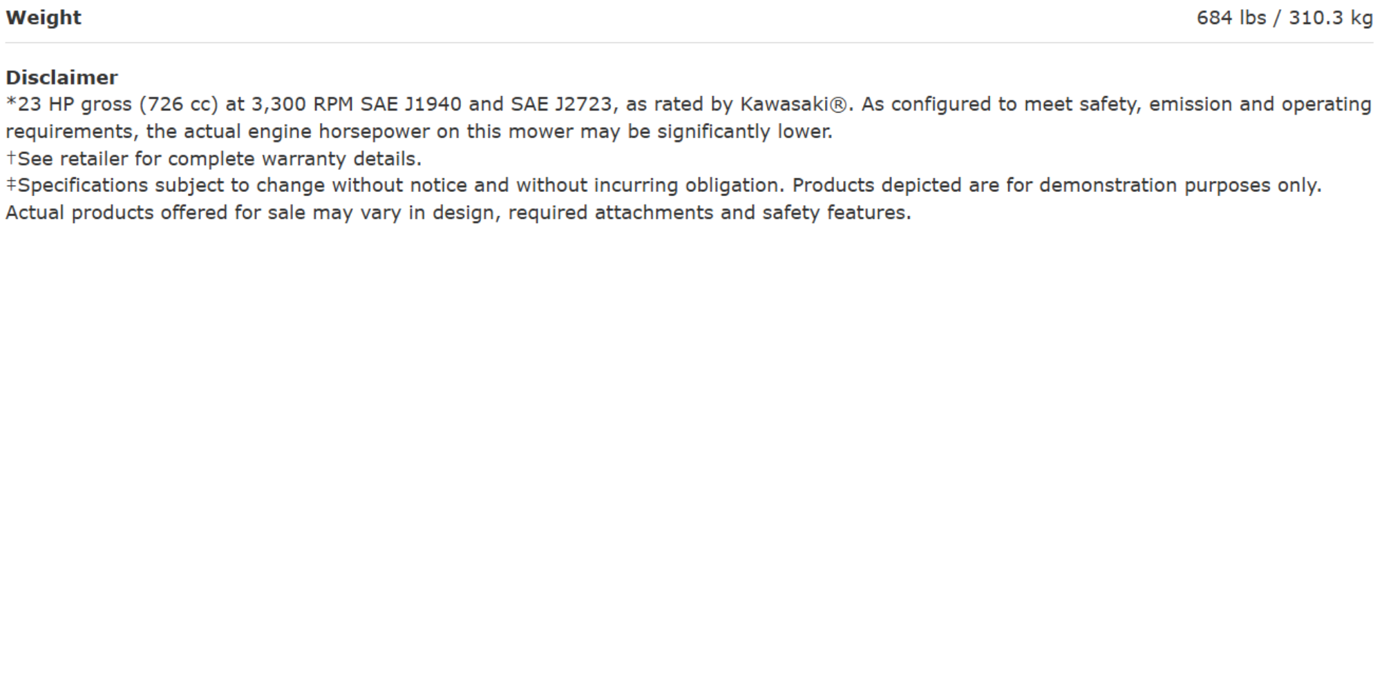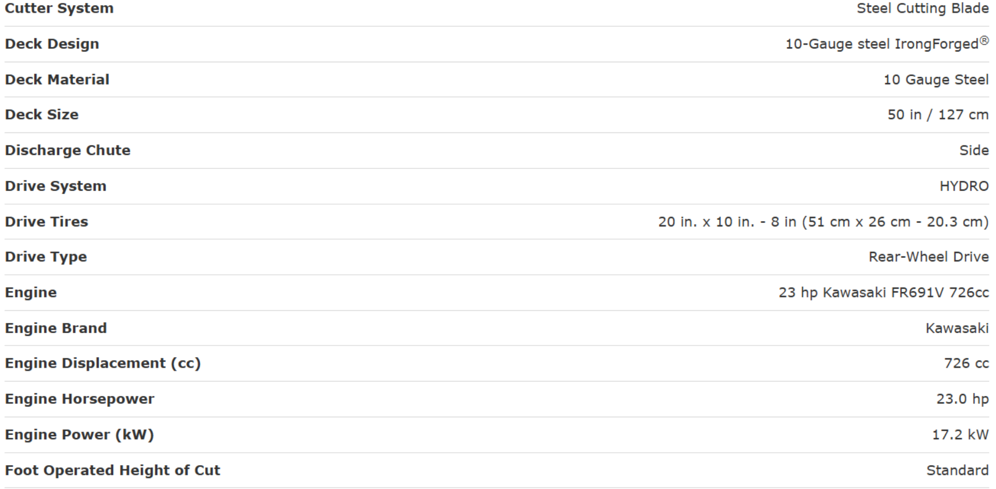 • The four-point deck hanging system doesn't flinch under your feet when you get on or off the mower.