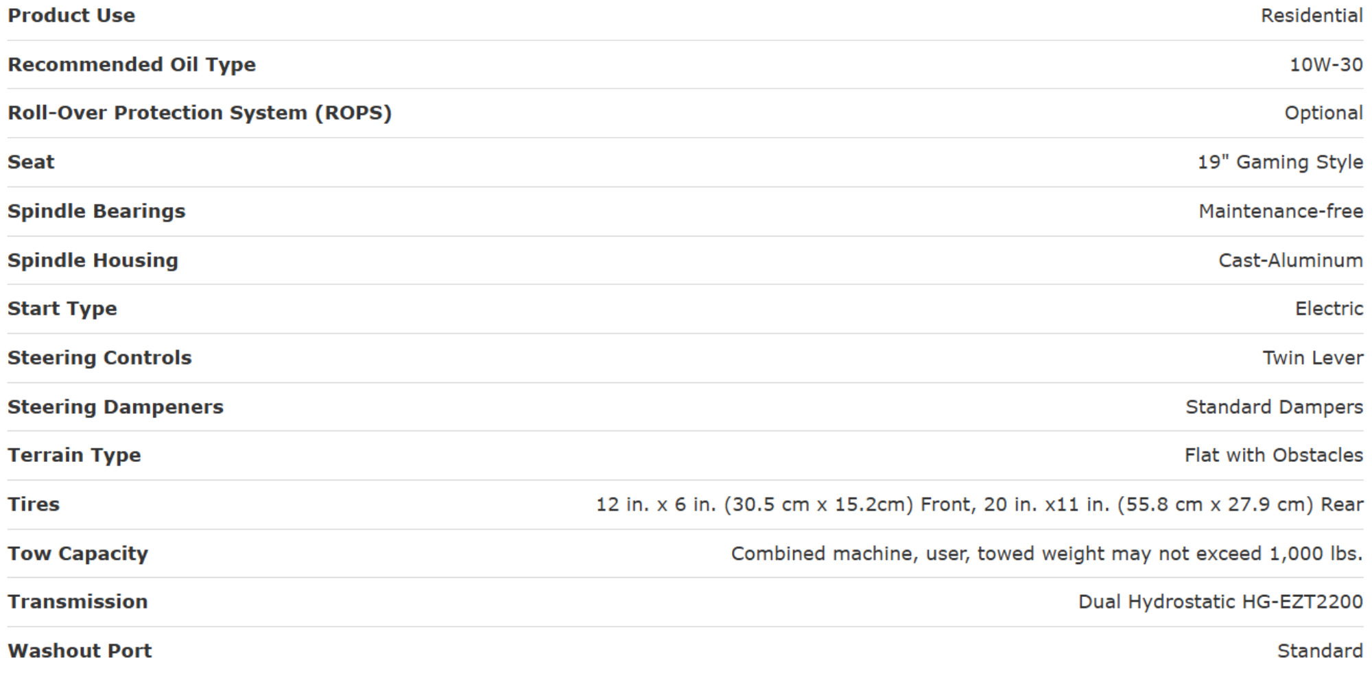 • Beefy hybrid-tread rear tires give you maximum traction without tearing up your turf.